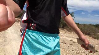 Thin boy in cutoffs step by step unwraps on the road as the temperature rises (meaty jizm)