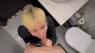 2 fellows screw and kiss in a public wc in a cafe