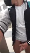 Milking off and spunking with my trousers down to my ankles at the Chicago airport shower