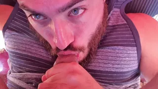 SELF FACIAL CUMSHOT on my camper, Fellating my own nads & manmeat