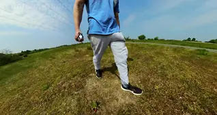 Freeballing walk in nature with a yam-sized sweatpants erection