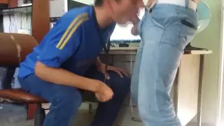 Gargling hetero coworker while chief is outside