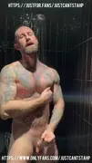 tattooed muscle stud Troy Daniels wanking off in the douche