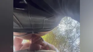 Leaned over inbetween some trees, he gets it raunchy and moist