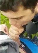 Youngster Deepthroating Weenie In The Park And Getting The Spunk