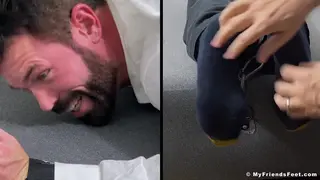 Tatted cub Joey cannot run away getting his size 12 soles kittled