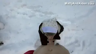 Youngsters Matty and Aiden bare outdoor oral pleasure in the winter for Christmas