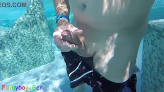 Homo fellow cheekily milks off his large penis in a public thermal pool. Super Hot underwater joy.