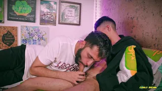 Camilo Dark-Skinned Providing Strenuous Suck Off to Torrid Lad Andres Zp Causing Giant Cum-Shots
