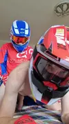 Motorcyclist poked a boy in mxhelmet