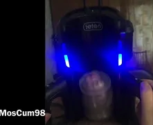 A stud shoots a load for the very first time from an automatic masturbator