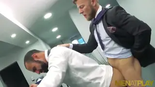 Description: Light-haired businessman Matthew Anders gave bearded Latino waiter Paco a ultra-cute peak and his XXL man meat as a bounty for supreme service!