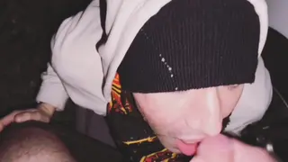 Bonne Vide Cogay français suce a genoux dehors sur le parking et avale tout le sperme