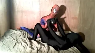 Gasmasked frogman unwraps his black latex to overpower spiderman
