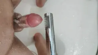 シャワーオナニーで連続射精をした後、潮吹き練習するも、オシッコダダ漏れになってしまう変態君。